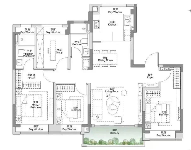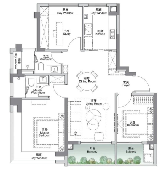 建筑面积: 117㎡(3房2厅2卫)